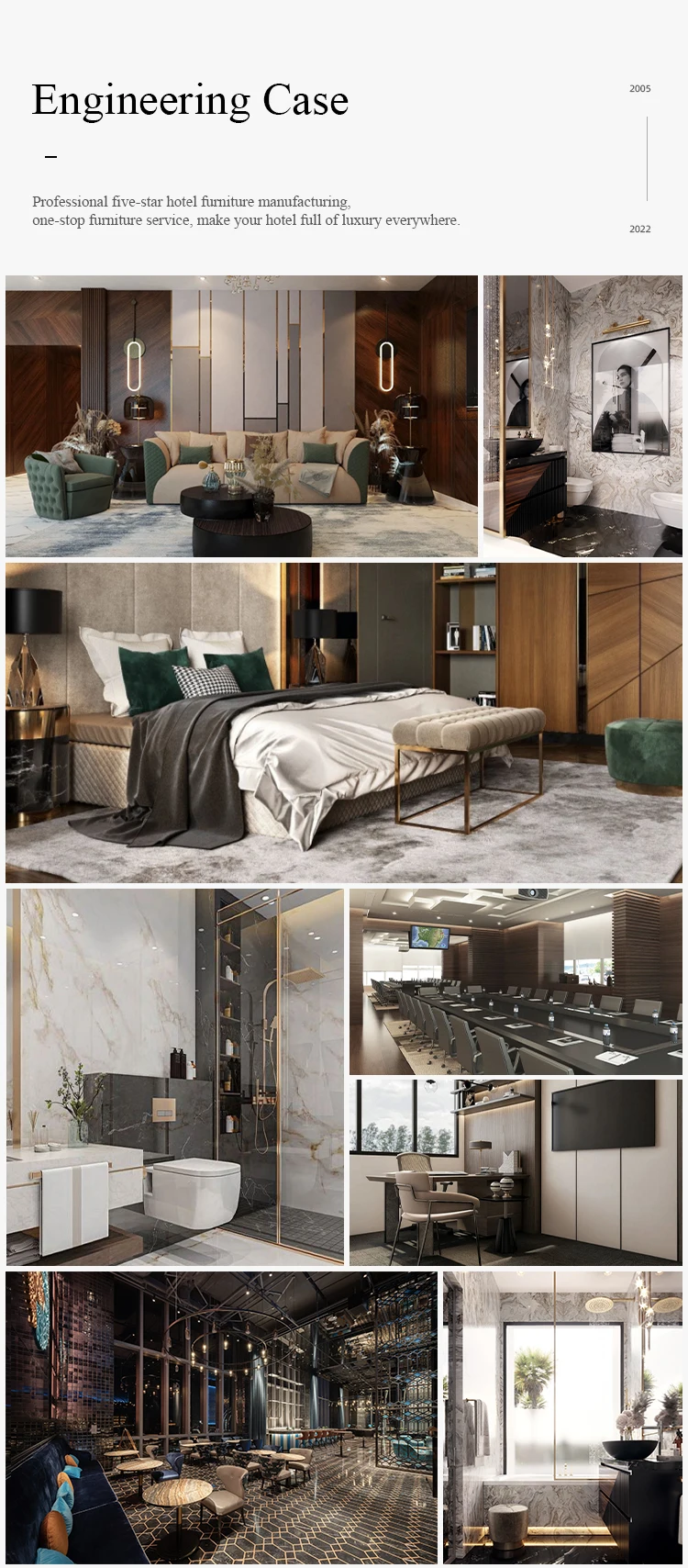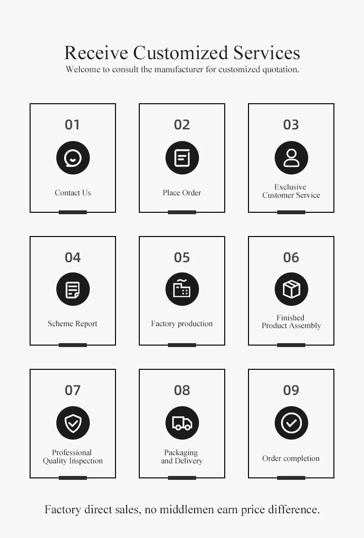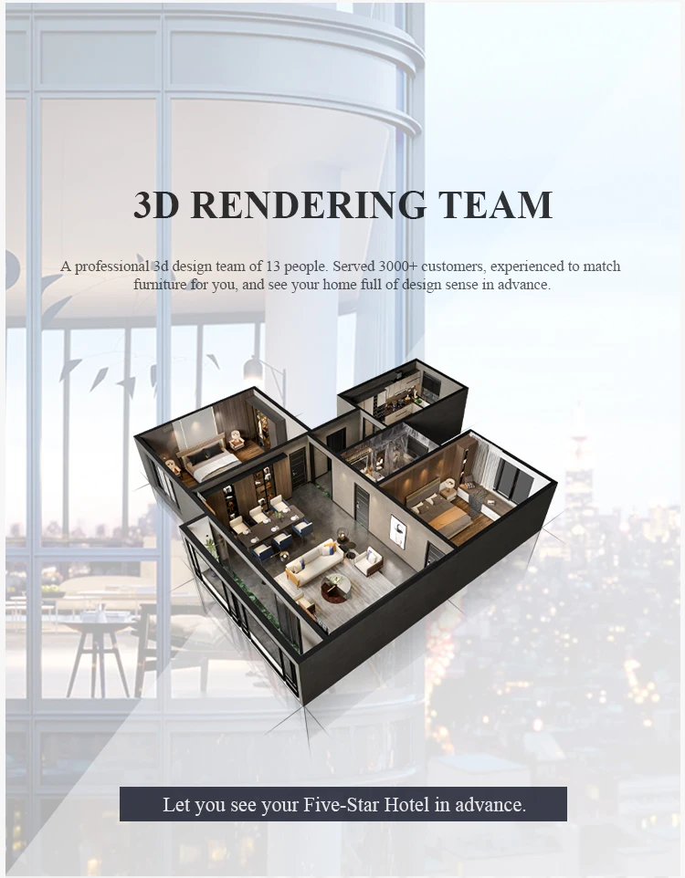 Inquiry-- sending us your requirement (layout ,designs,etc)-- choosing designs you like and offering you proposals of each area of your project-- 3d rendering if needed-- confirmation of orders-- deposit payment--production-- delivery.