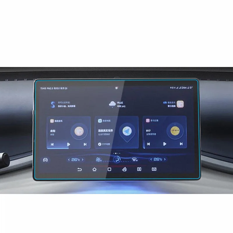 1, Precise Cutouts - Laser cut tempered glass fits the car navigation screen perfectly.