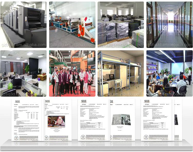 Guangzhou Keruijia Intelligent Technology Co., Ltd is a professional 3D lenticular printing manufactory,which located in Guangdong,China.We are specializing in various kinds of 3D products for more than 10 years.Such as :3D/5D pictures,3D postcard,3D card,3D bookmark,3D poster,3D stationery,3D fridge magnet,document file,mouse pad/mat,cup pad,3D trademark,3D tag etc.With the advanced equipment,high-grade management,management,professional design team and skillful staff,our factory supply one-stop service from design to produce,from raw material to end packing.Customized design and patterns is welcome.OEM&ODM services is also available. High quality with good price. Custom design as your choices.You are expected to visit us. We will serve you with heart and soul! Enterprise Spirits: Loyalty, diligence, innovation and responsibility.