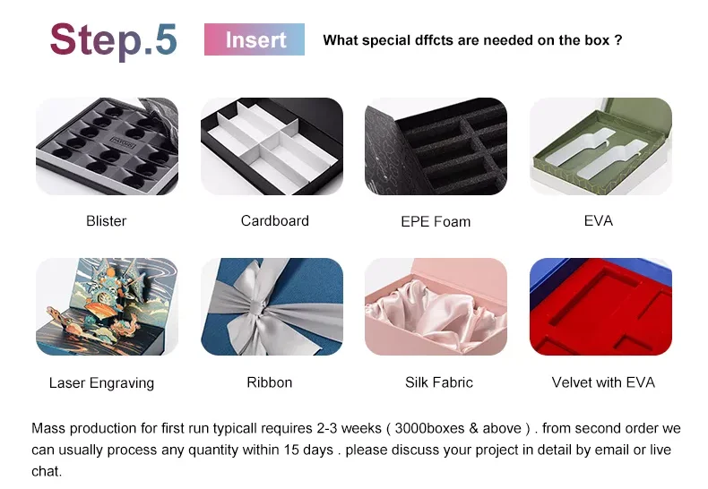 Lead Time | - Sample order: 3-5 working days for paper box & paper bag- Bulk order: 10-15 work days after confirm order, according the quantity of paper box & paper bag |
