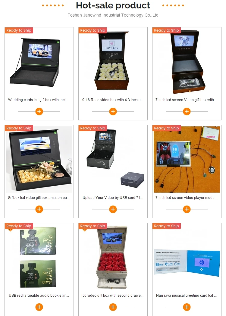 You can fully customize the video content message, greeting card and recording.Popular Size is A5, 8.3x5.8inch (210* 148mm), but we can custom print any size Video Brochure card. We can upload your Video content message. We make the highest quality custom video brochures musical greeting cards and personalized video box for business promotions or beautiful gifts. 90% of our product are exported to overseas countries, such as UAE, USA, UK, Canada, Spain, Mexico, Netherlands, Switzerland, Norway, Israel, Australia, South Africa, Pakistan, Vietnam, Philippine, Malaysia, Singapore, etc.
