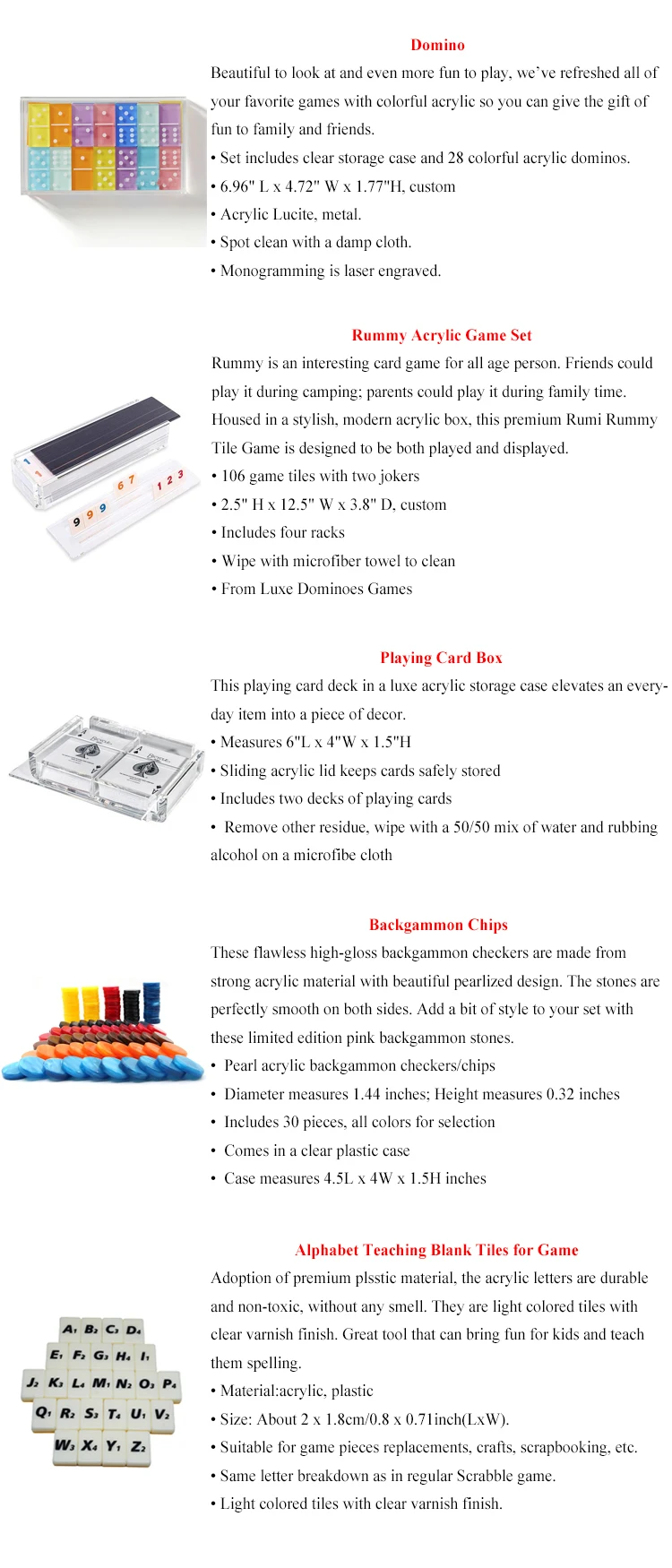 Acrylic Dominoes sets