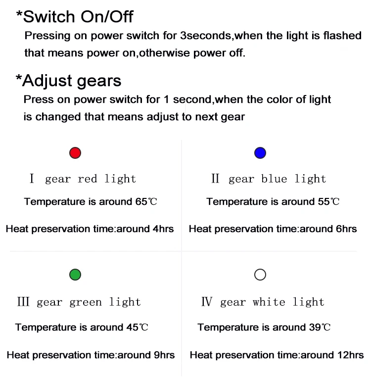 Temperature Settings | 39~65℃ |