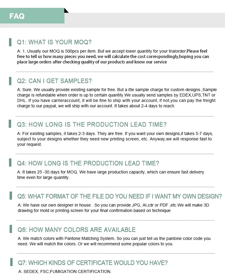 Product advantage: | 1. Multi-function, eco-friendly and handmade. 2. Color, design, shape, logo, artwork can be customized 3. Sell by set to save your sea freight. |