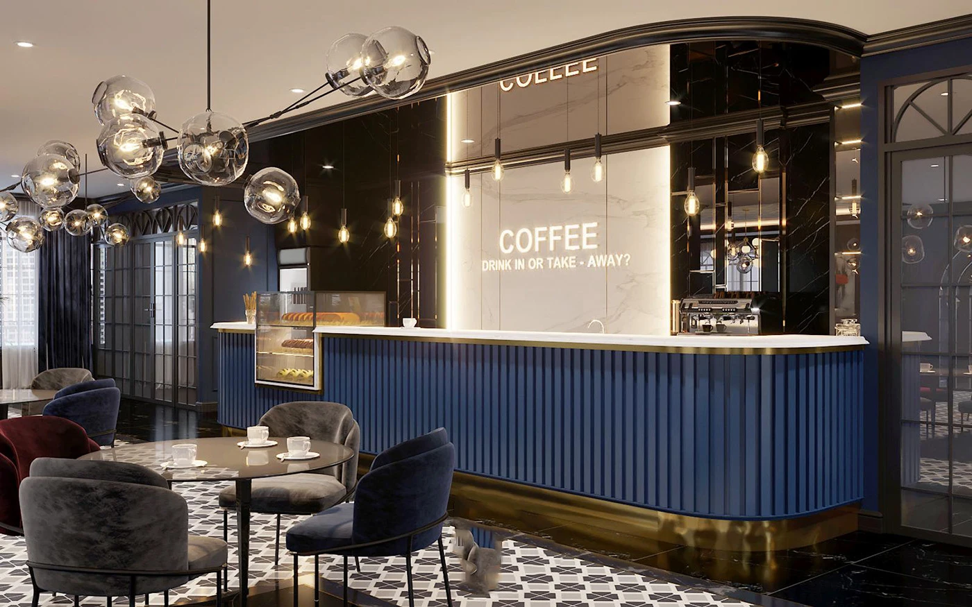 customized elegant robot coffee kiosk modern luxury bar counter design design bubble tea kiosk shop | |||||