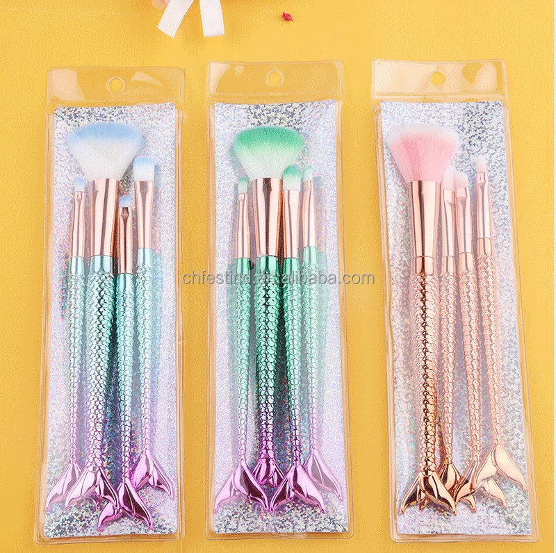 Product Name | Festind four-piece suit mermaid makeup brush fiber colorful soft hair loose powder brush beauty makeup tools |
