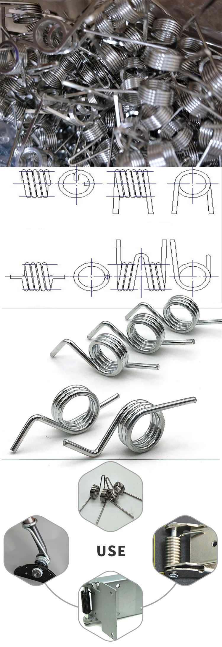 Material | Carbon steel(SWC), cold roller steel, stainless steel(SUS), beryllium copper, phosphor copper, brass, Music wire or piano wire(SWP), 60Si2Mn, 55CrSi etc |