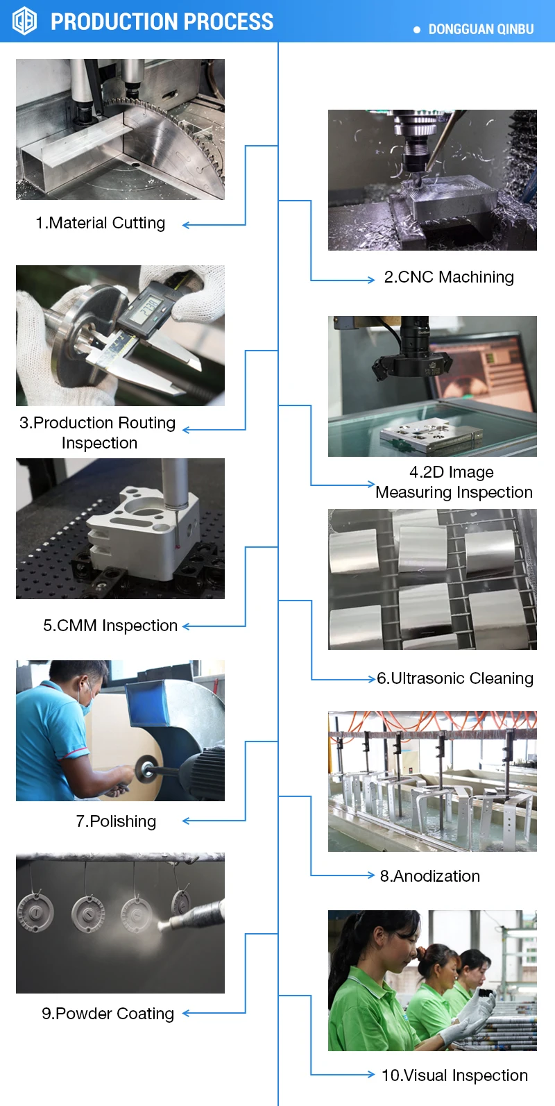 Frankly speaking, many of our customers ran into questions such as 'How this part is made' or 'What kinds of machining processes are needed for my parts'. Qinbu has been involved with the CNC machining field and related industries for more than 13 years. We have rich experience in processing the parts with our high-advanced machine.