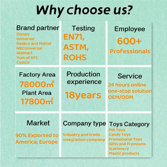 The plenty of testing equipment ensure that all of our products meet the standards of European and American market, for instance, EN71, ASTM and ROHS. Our dust free workshops has attracted many famous brands of biscuit, chocolate and fast-food chain stores such as Lindt, Nestle and KFC to cooperate with us.