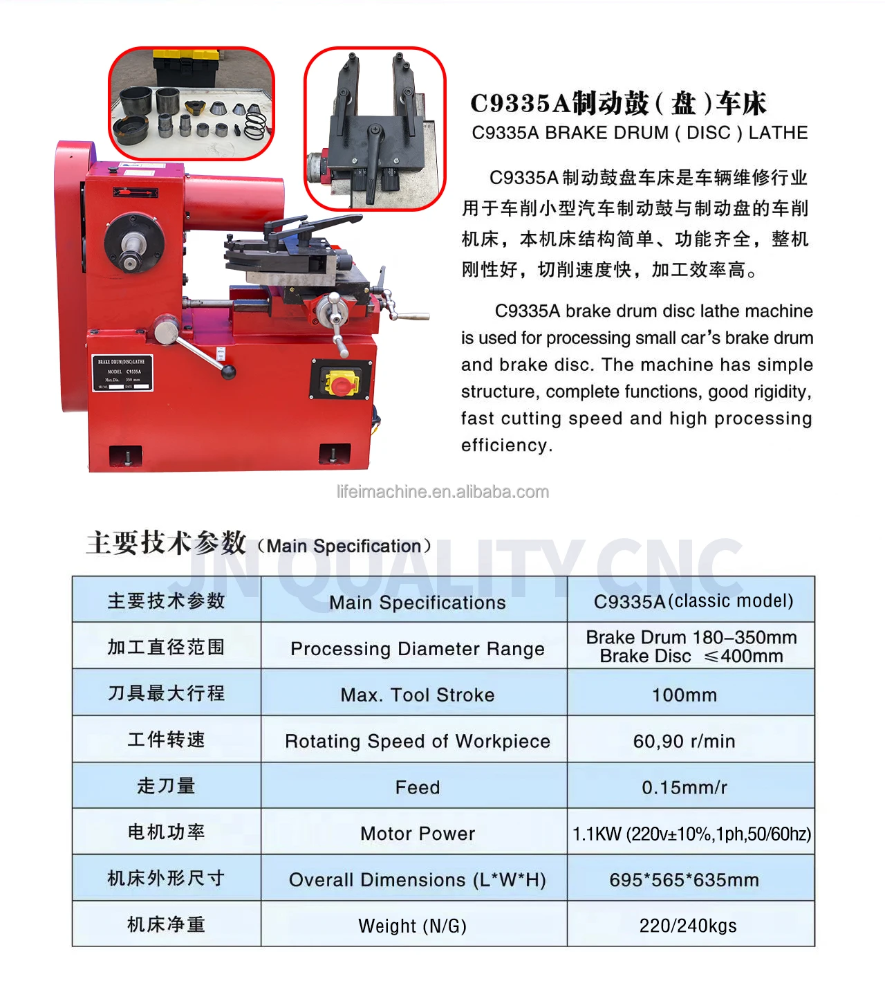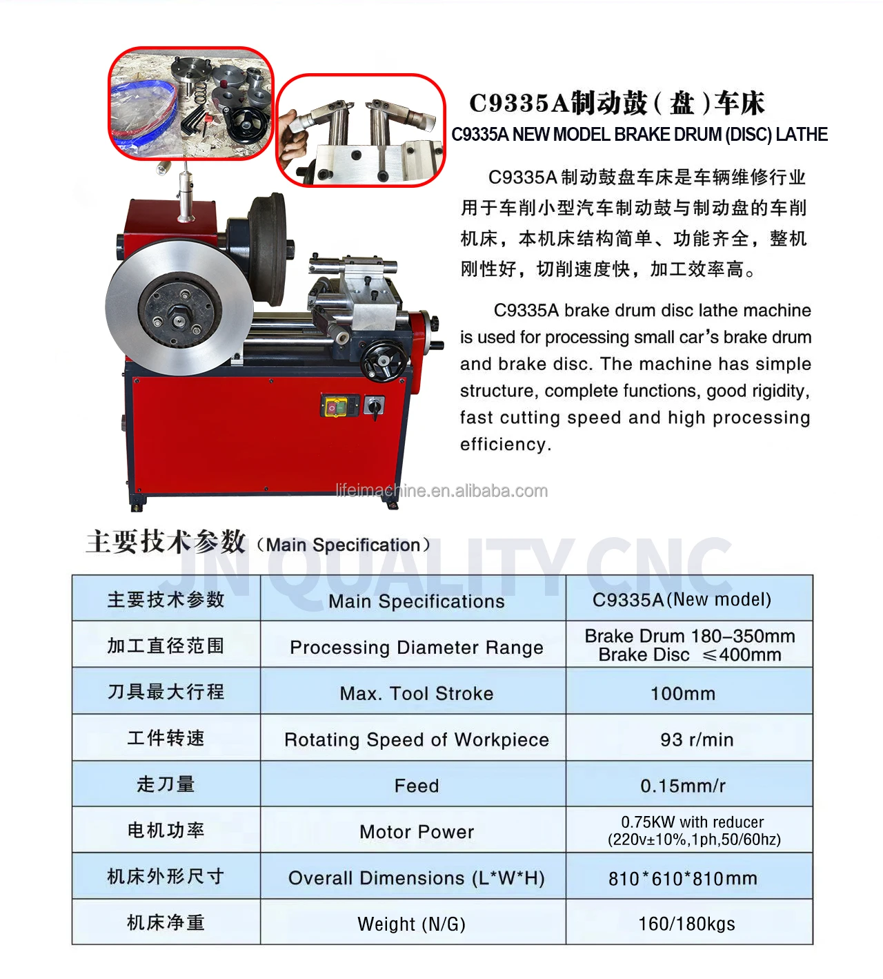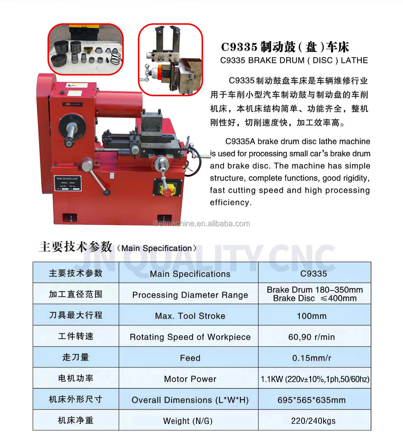 3 | Range processing diameter | Brake disc: 160mm (Min diameter) - 400mm (Max diameter); Brake drum: 180mm (Min diameter) - 350mm (Max diameter) |