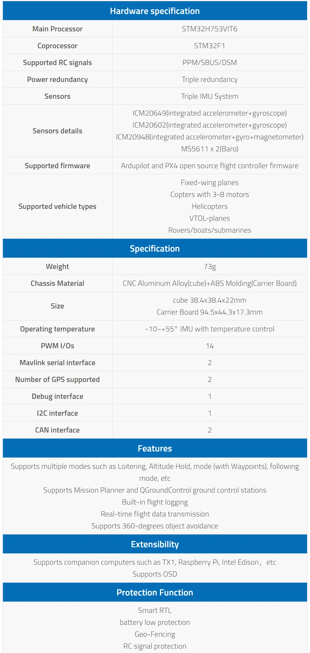 Servo rail input voltage | 3.3 V / 5 V |