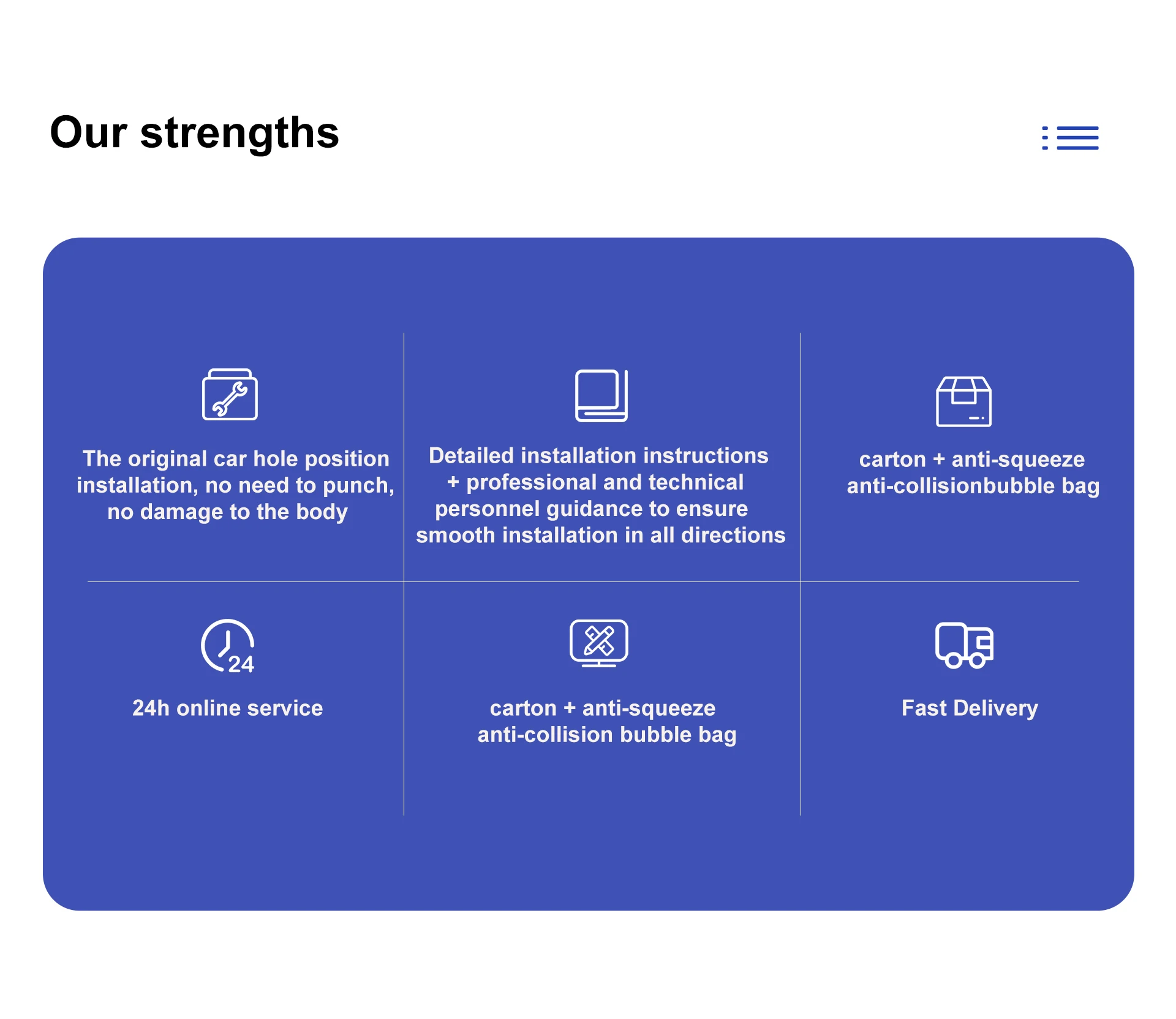 A. If you encounter problems with product quality, please contact us in time for photos and videos. After confirmation by our technical department, we will arrange to reissue new products to customers.