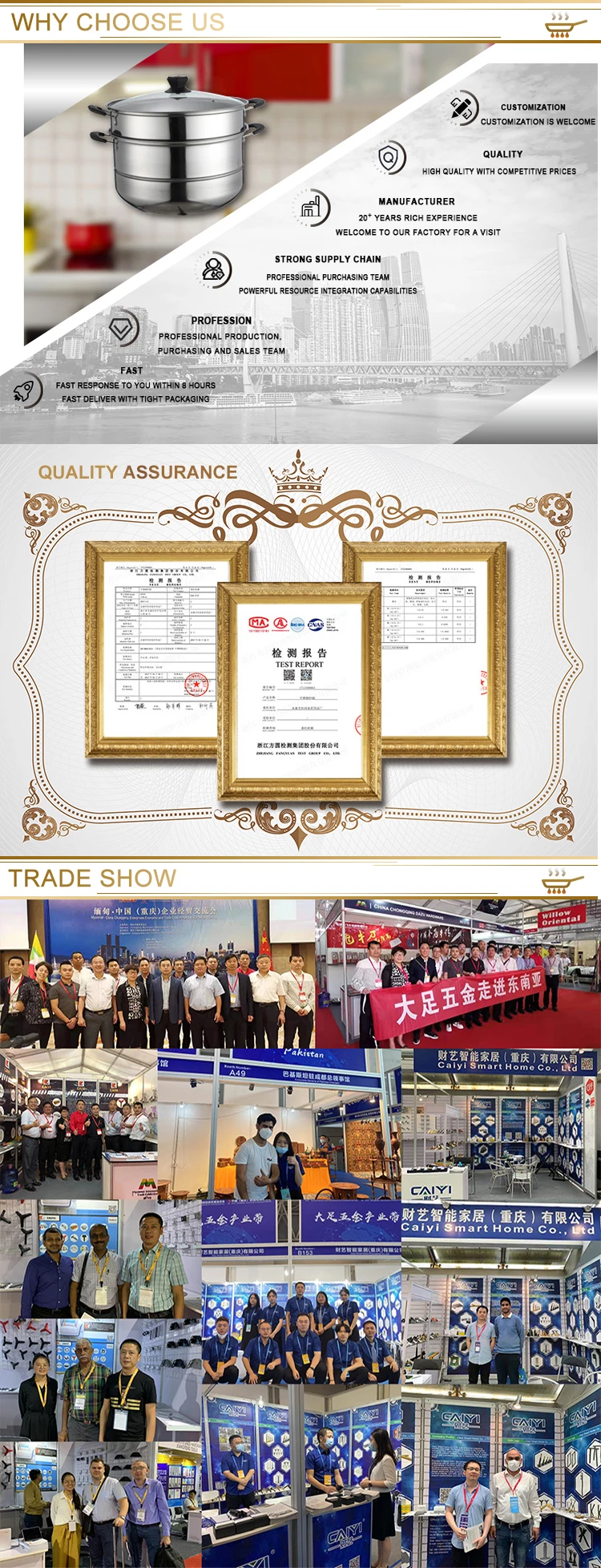 A: We are an enterprise integrating industry and trade with rich experience and resources. Founded in 2001, our factory is located in Chongqing city, southwest of China.