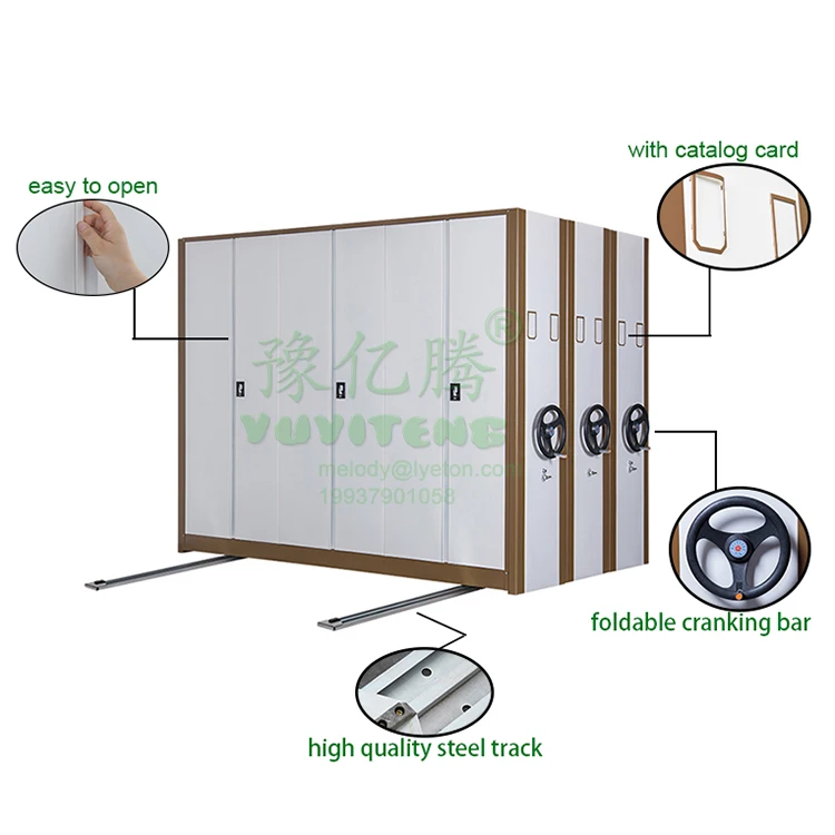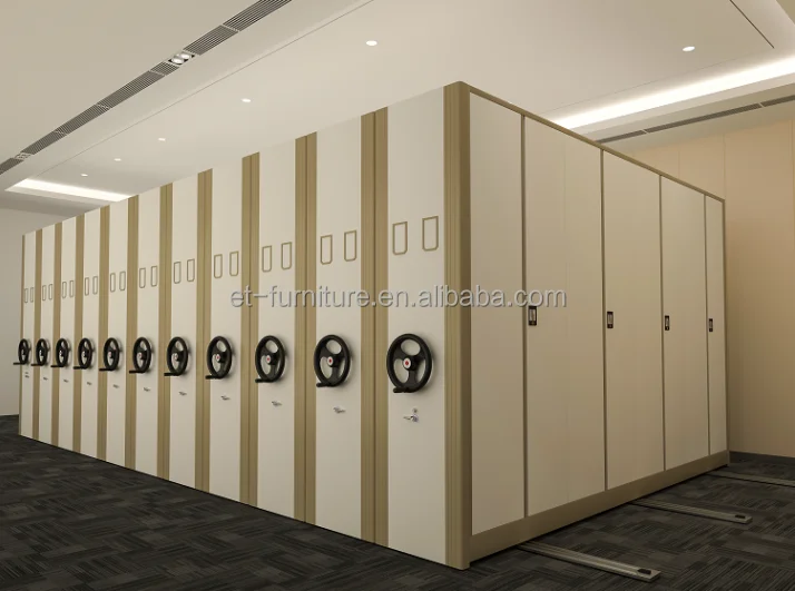 Bulk filing cabinet is ideal for the storage of all types of books and documents, making it a perfect system for office, libraries, publishing houses, technical archives, and even in the industry and warehouses. It can also be used to store other types of small articles, such as pharmaceutical products or spare parts. Mobile shelving system adapts perfectly to the available space and to the characteristics of the product being stored.