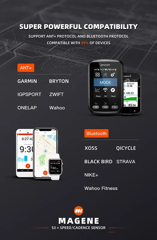 Magene S3 + Датчик скорости/частоты вращения педалей Двойной Режим водонепроницаемый ANT Bluetooth велосипедный компьютер