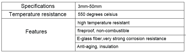 Used for wrapping of exhaust pipes, hot and cold insulation, electric cables, living switch boxes, drying oven, conveying hot articles in glass Industries, oil lamps and heater.