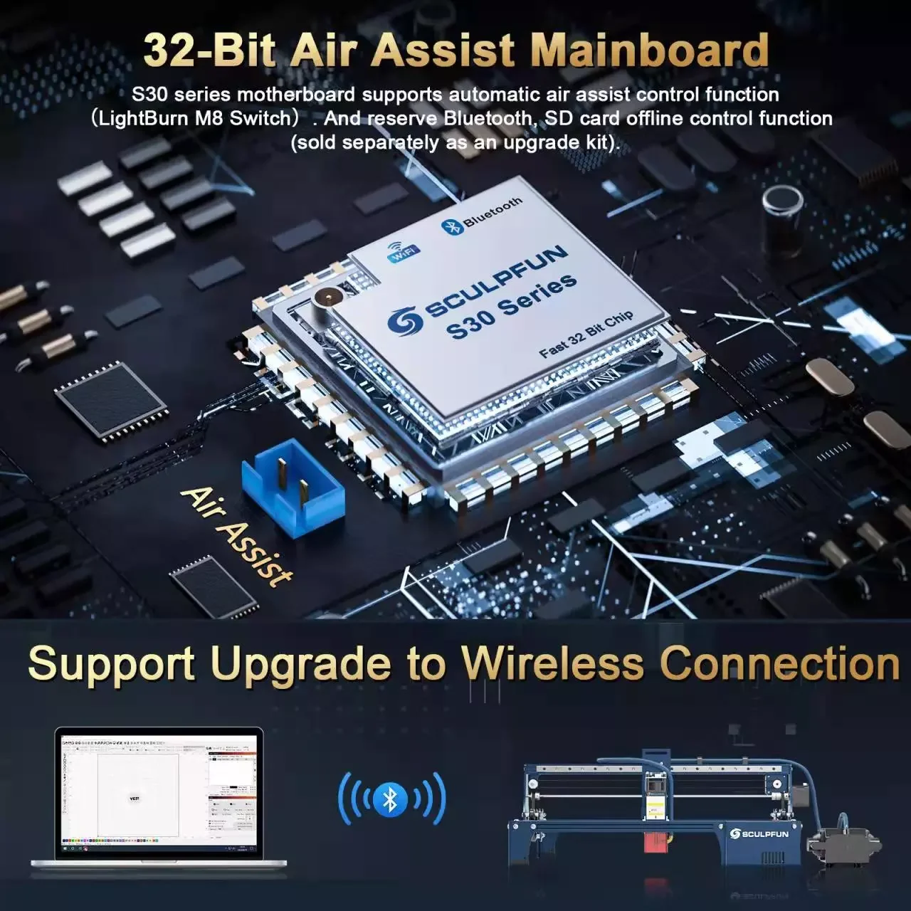 Motherboard | 32-bit air-assisted motherboard, reserve Bluetooth, SD card offline printing function. (Upgrade Kit sold separately) | 32-bit air-assisted motherboard, reserve Bluetooth, SD card offline printing function. (Upgrade Kit sold separately) | 32-bit air-assisted motherboard, reserve Bluetooth, SD card offline printing function. (Upgrade Kit sold separately) | |||