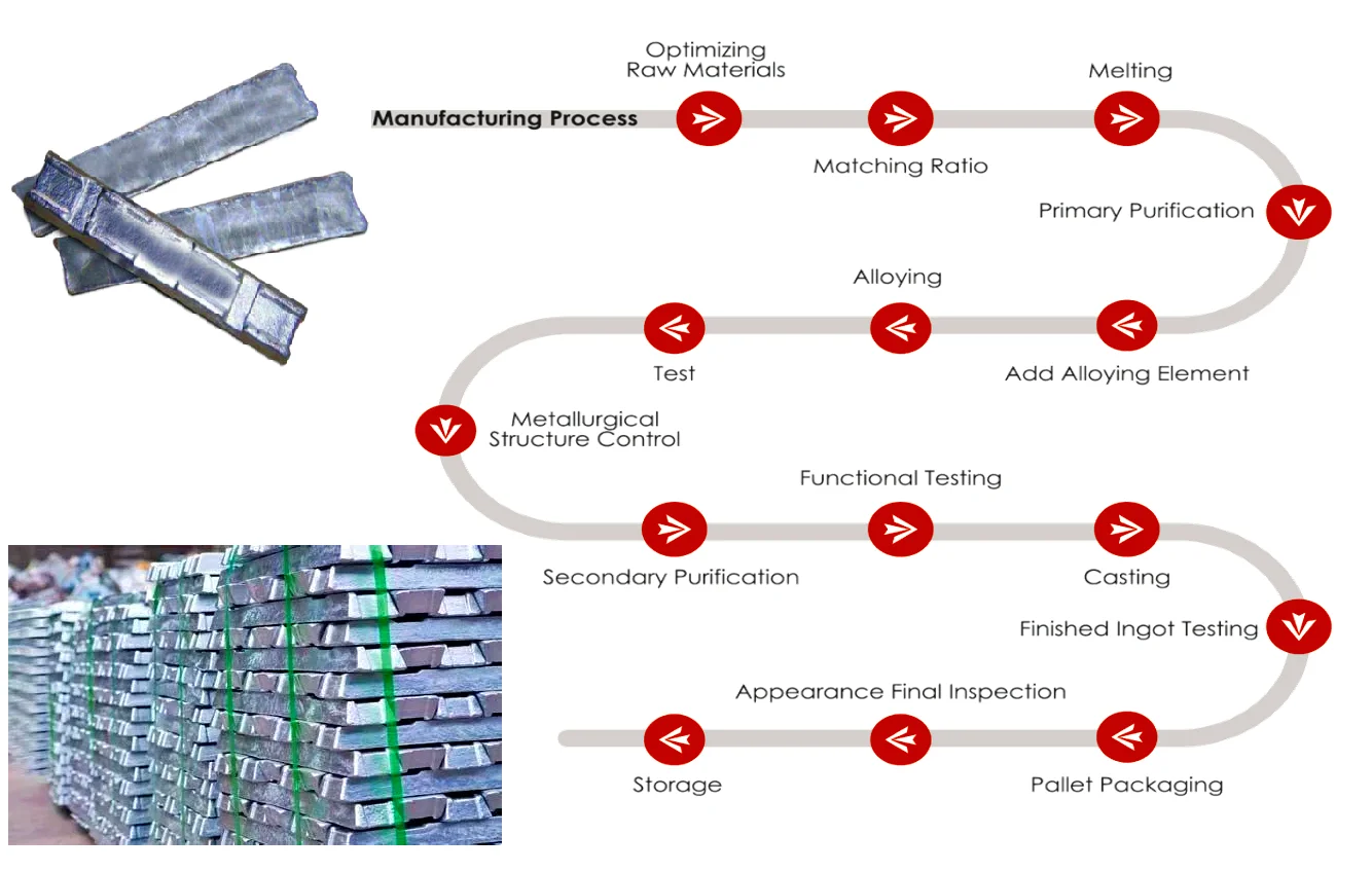 Al-Sr alloy | Al-Sr | Be used for Si metamorphism and treatment of permanent mold casting, low-pressure casting or long-term casted eutectic and Improving property of castings and alloys | After the completion of refining, put into 750ºC-760ºC molten aluminium |