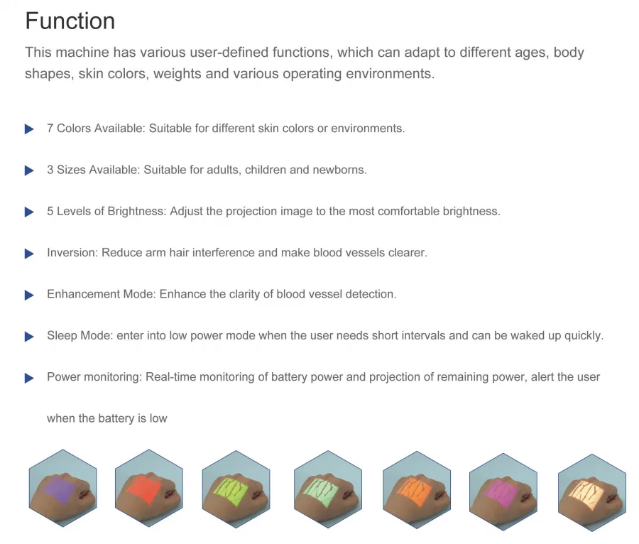 Portable Vein Finder Technical Parameters | ||