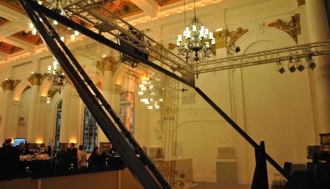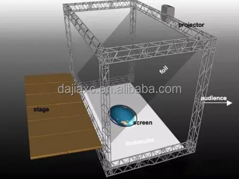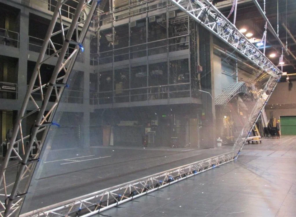 We use this developed foil to place across the front of the stage at an angle of 45 degrees towards the audience, the vivid image will be supplied by LED screen or powerful projector to reflect on the stage, so the 3-dimensional moving images to appear within a stage setting using peppers ghost technology. | ||