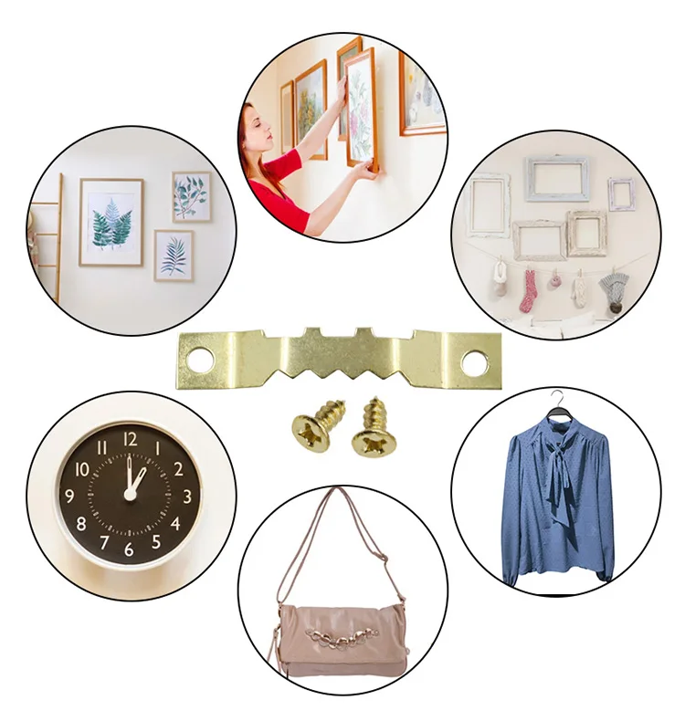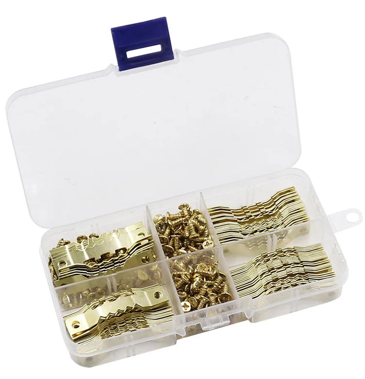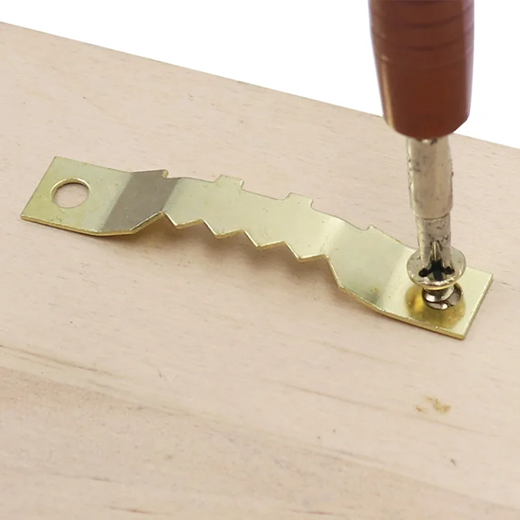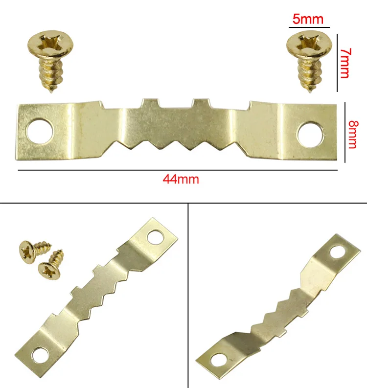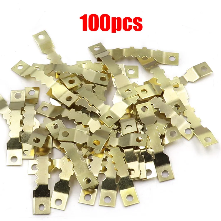 Golden double-sided serrated hook 100 pieces with screw combination picture frame picture frame installation accessories metal case hook