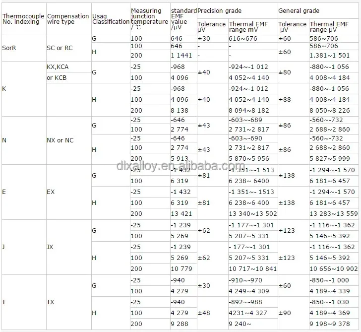 Type K Temperature Range: * Thermocouple grade wire, -200~1300℃(for short term) and 0~1100℃( for long term)