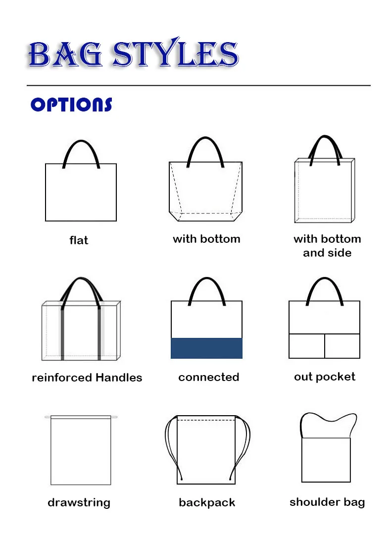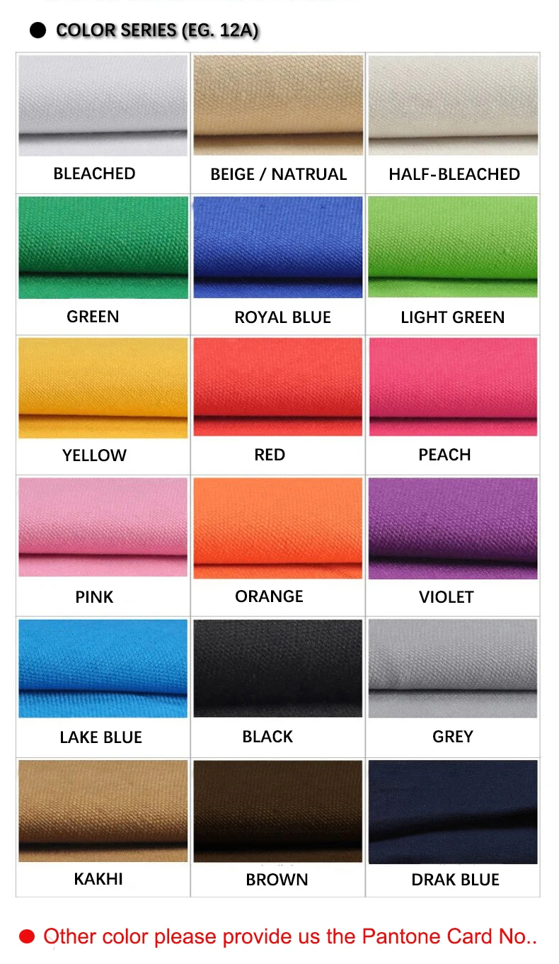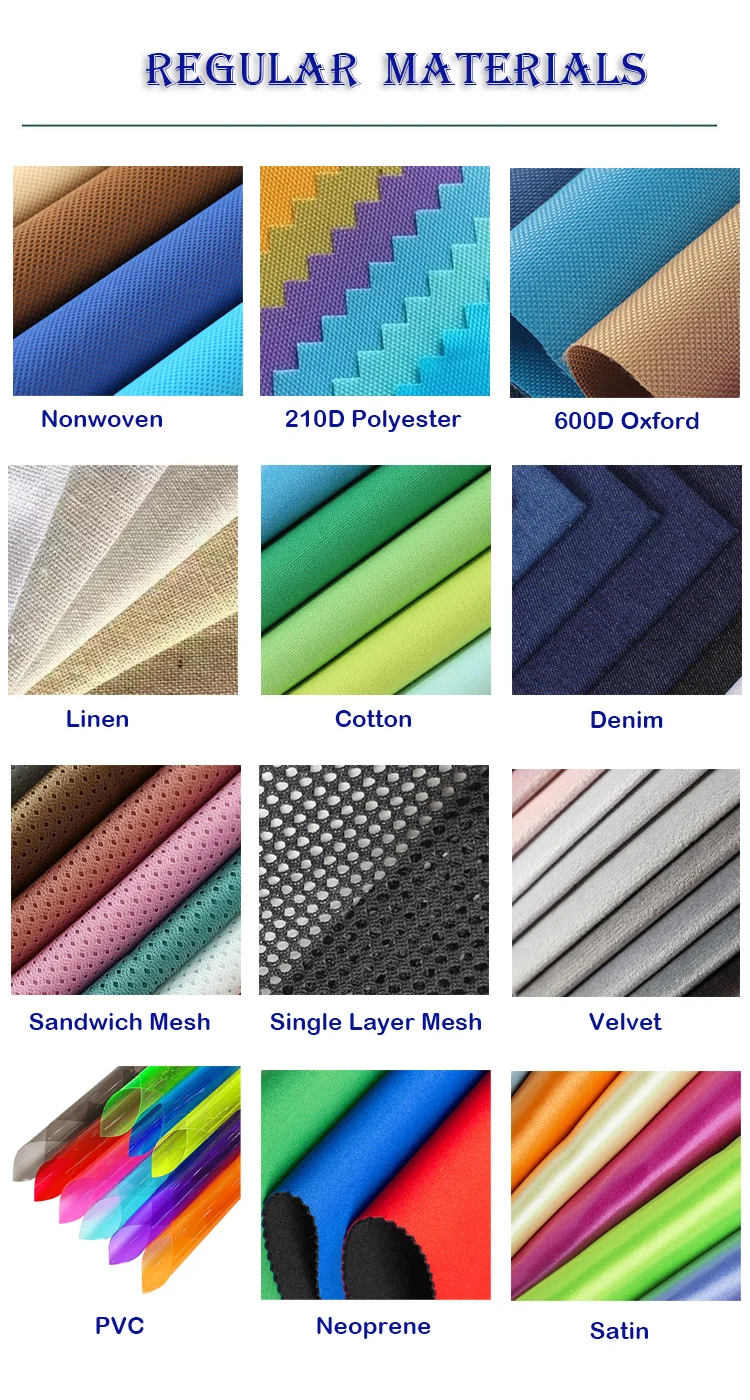 Material | cotton/canvas(4oz-16oz), polyester, nonwoven, pp woven, burlap, linen, denim, etc. |