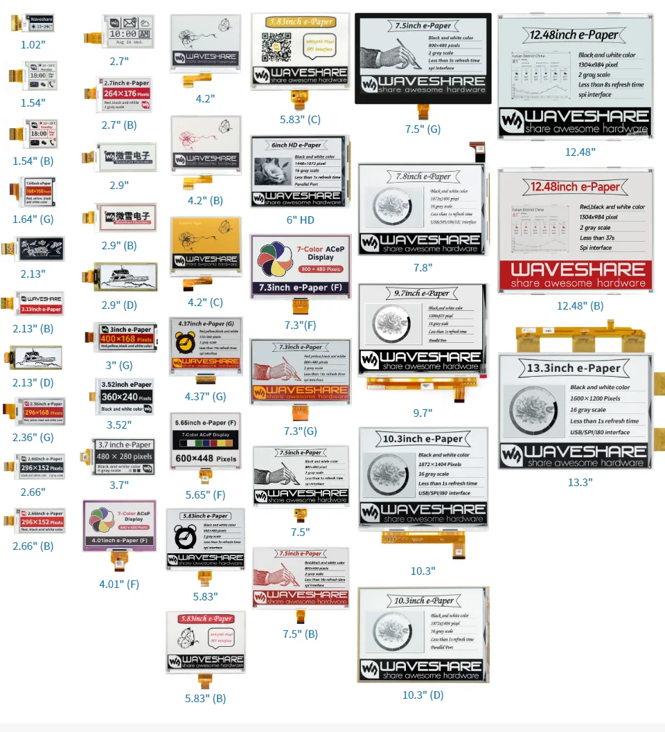 7.8inch e-Paper | black, white | 16 | 1872 1404 | 158.18 118.64 | 173.8 127.6 | <1 |