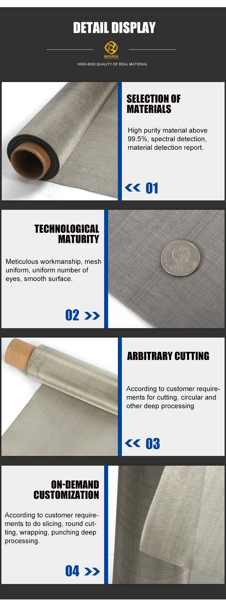 Features | igh tensile strength ; Acid and alkaline resistance ; Corrosion resistance ; High temperature resistance; Excellent filtering performance Good electricity-conductivity | ||