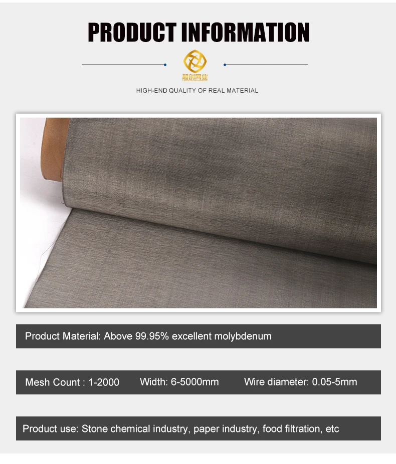 Product name | 180 200 mesh molybdenum wire mesh | ||