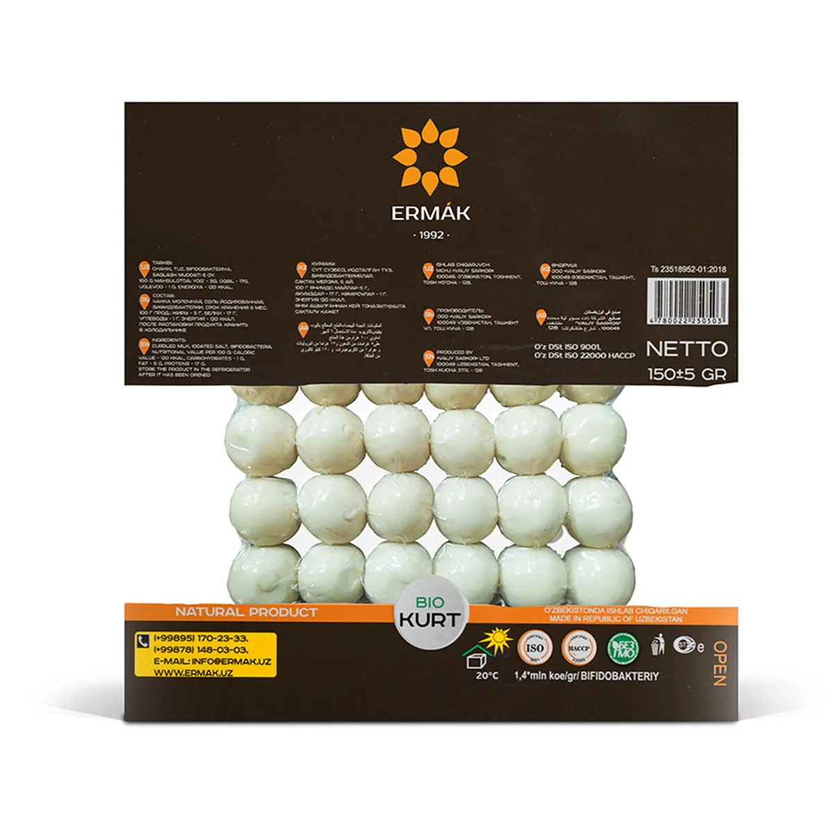 Under the ERMAK brand, for the first time in Uzbekistan, factory processing, production, packaging and sales of products from sunflower seeds were organized. Since 2008, ERMAK has been considered the first and only company in Uzbekistan that produces kurt in factory conditions.