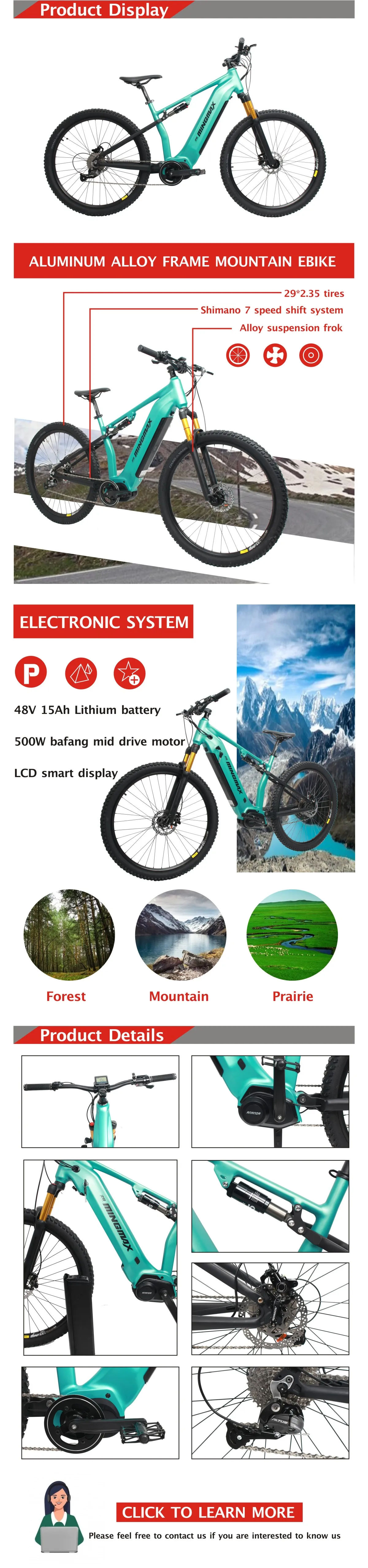Motor | 250W-500W mid motor | Front fork | suspension | |||