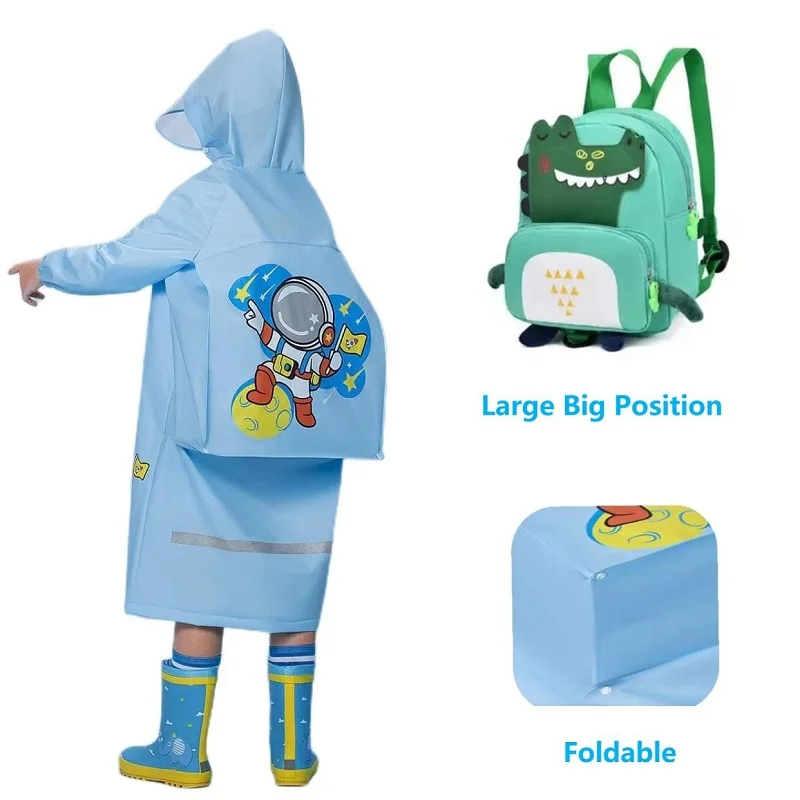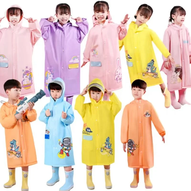 Kids raincoat waterproof impermeable rain suit EVA rain coats for children kids customize Cartoon pattern Bag position