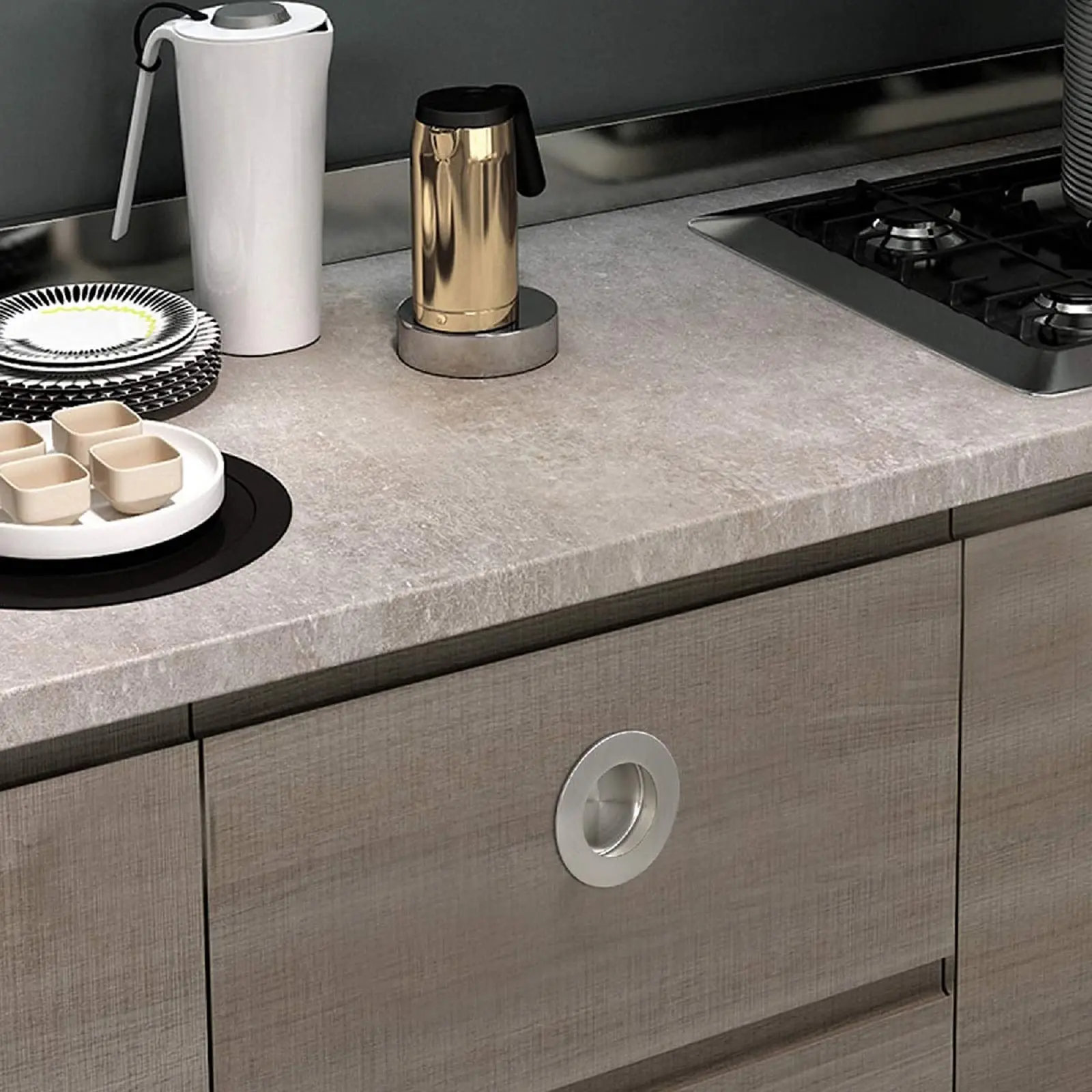 Round Concealed Install Handle (can be customized) | Outer Diameter (mm) | Groove Diameter (mm) | Height (mm) | Groove Length (mm) | ||||