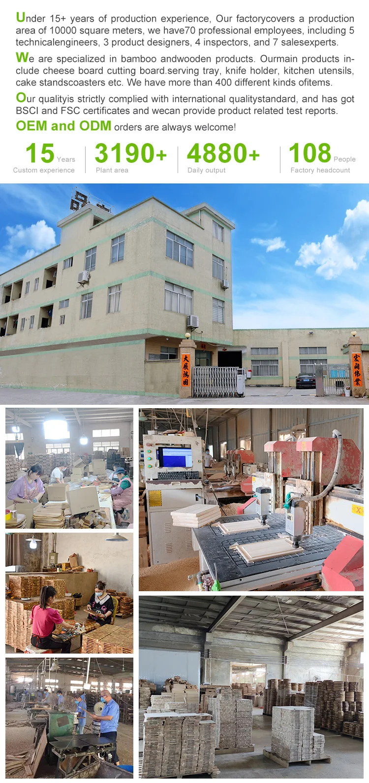 A: We are a wooden product manufacturing factory. We have been in the wood product industry for 15 years.Wood cutting board, cheese board, kitchenware, knife block all are our main products.