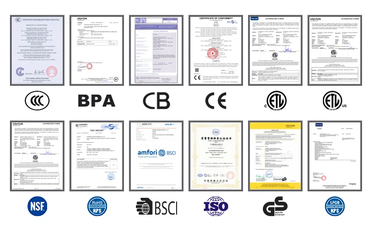 A: ETL, CETL, NSF, CB, CE, ROHS, LFGB, GS, CCC, EK, PSE, etc.