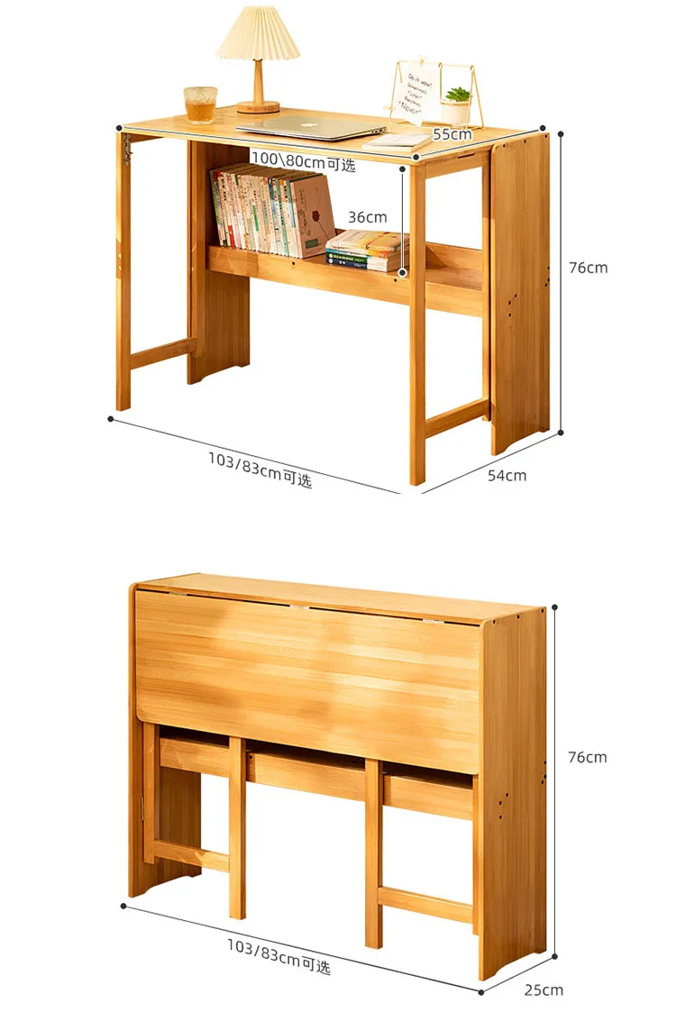 Офисный стол и Набор стульев складной учебный с книжной полкой деревянный компьютерный для