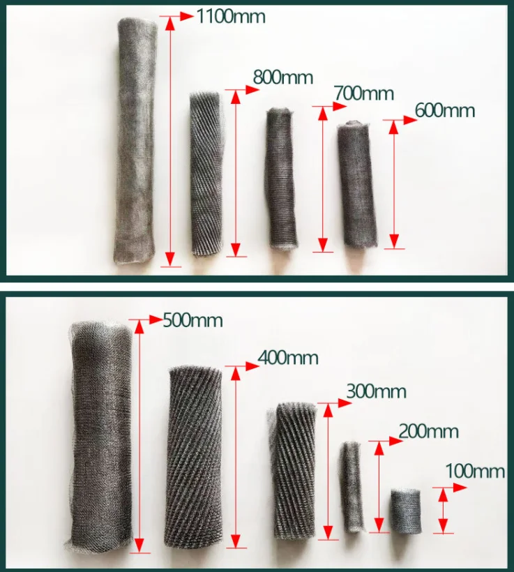 Take knitted wire mesh 40-100 as an example. That is knitted wire mesh, a 100mm wide vapor-liquid net or a 100mm wide vapor-liquid net made of 40 knitted fabrics has 40 holes. The standard vapor-liquid net is a widely used model, and 40-100.140-400 is more commonly used. |