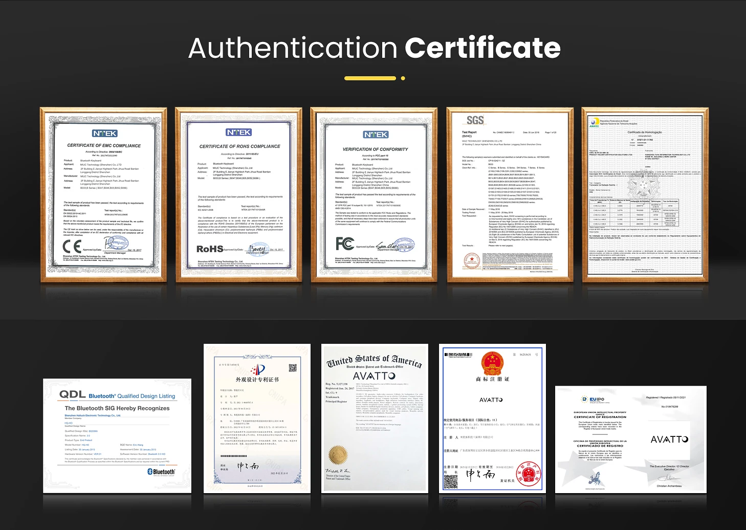 A11: All product have got standard certificate like CE,RoHS and FCC.Some special model will have ANATEL,UL,BQB etc.