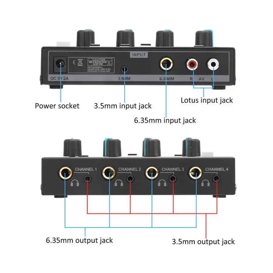 3. The 4-channel distribution system allows up to 4 people to listen to playback at the same time with excellent audio quality.