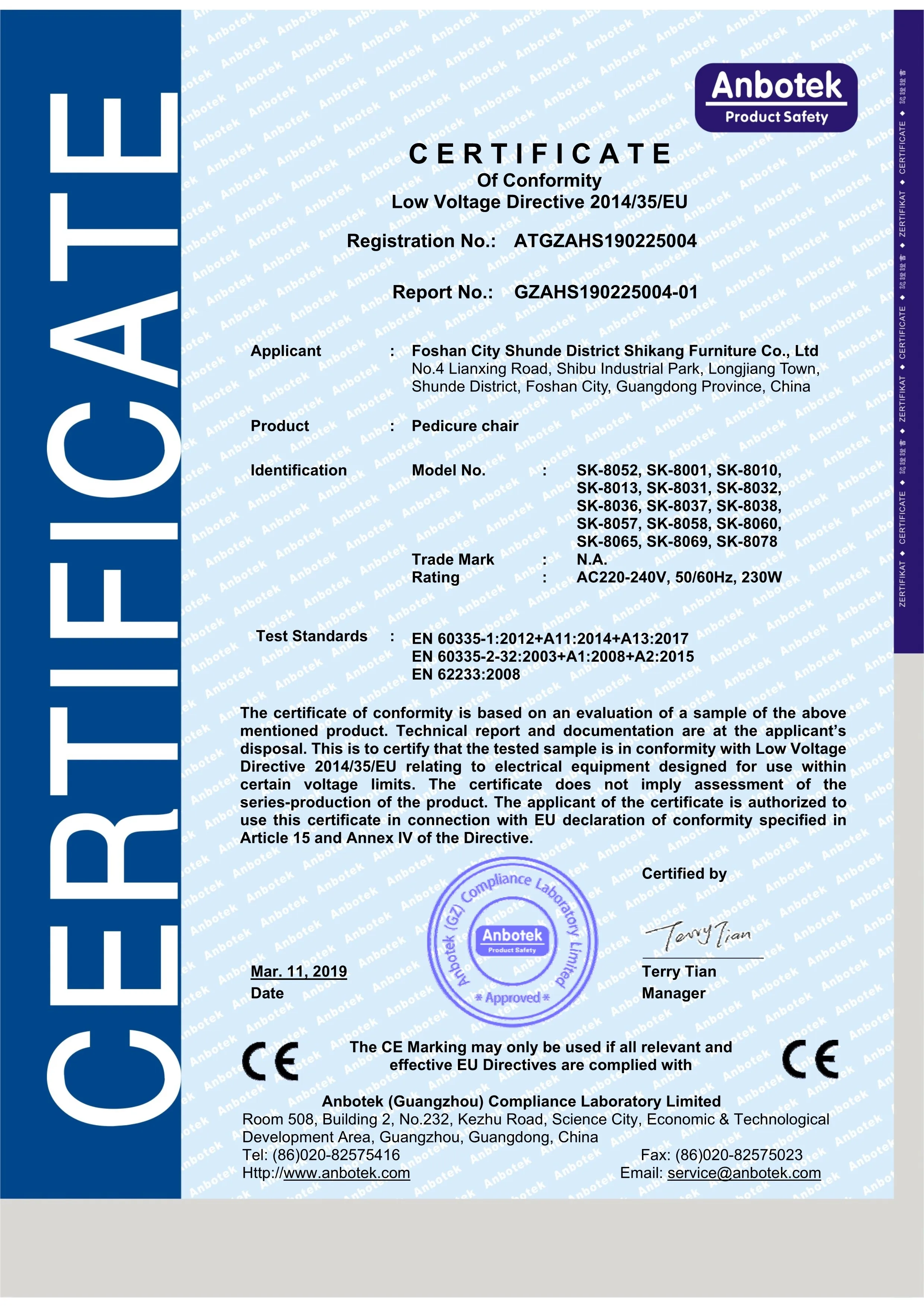 DESCRIPTIONS | STYLE ONE (Luxury B Massage Function) 1. Cover: PU leather. (Color optional/as per your request.) 2. Armrests lifted up/down for easy access, with tray for personal possessions. 3. Chair can moved forward/backward and back reclined/inclined by electrical control, for a better position to enjoy the pedicure time. 4. Massage Functions: Two mechanism devices with 4 massage wheels (it can slide up and down) and airbags at seat. Six massage functions come with tapping, rolling, kneading, flapping, kneading & tapping, airbag massage. Massage width, speed and strength adjustable for 3 levels. STYLE TWO (Normal A Massage Function) 1. Cover: PU leather. (Color optional/as per your request.) 2. Armrests lifted up/down for easy access, with tray for personal possessions. 3. Chair can moved forward/backward and back reclined/inclined by manual control/electrical control, for a better position to enjoy the pedicure time. 4. Massage Functions: Two kneading devices with 8 balls massage for neck, back and waist, also vibration at seat for buttocks & thigh relax. |