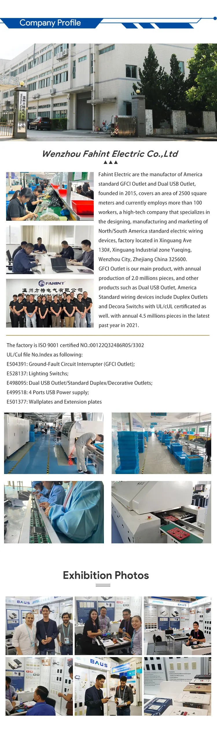Our main products is :GFCI Outlet/Dual USB Outlet/Standard wiring devices and Switchs.