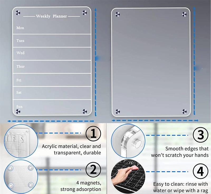 Фабричная поставка, акриловая магнитная доска для сухого стирания, календарь для холодильника, прозрачная доска для сухого стирания, многоразовый Магнитный ежемесячный планировщик US $4.00-$5.00