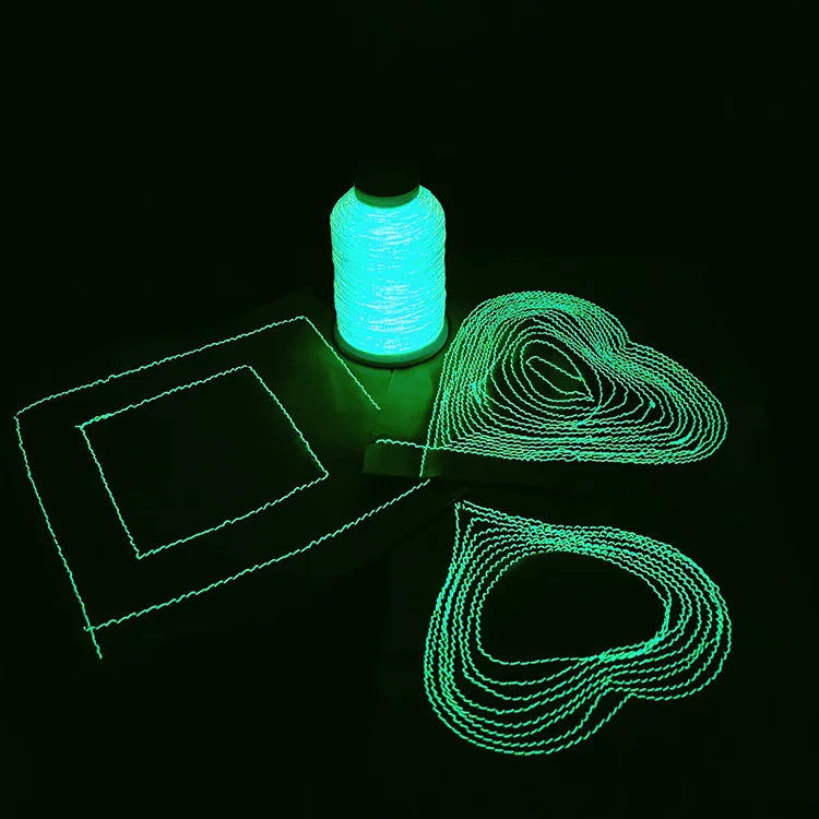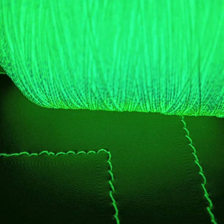 Luminous leather sewing thread Description | Luminous yarn or fiber are a new functional and environmentally friendly material made of rare earth luminescent materials. As long as it absorbs all kinds of visible light for 10 minutes, it can store light energy in the fiber, continue to emit light for more than 10 hours in the dark state, and can be recycled indefinitely. When there is light, the luminous fiber shows white, green, etc. When it's in the dark, the luminous fiber itself can glow green, blue, yellow, etc. |