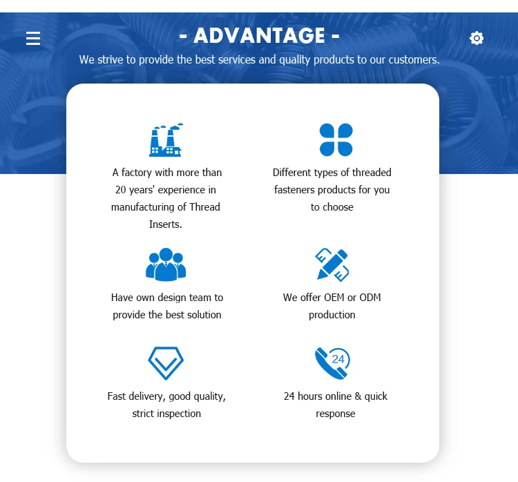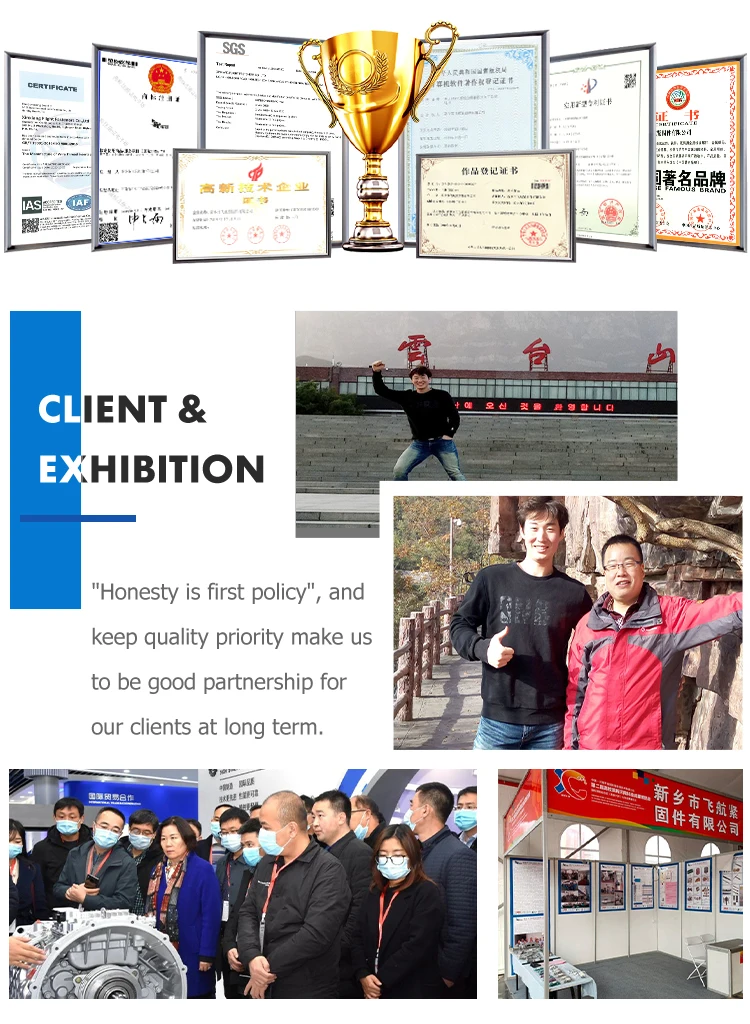 Surface treatment | Stainless steel surface; Environmental protection plating color : green,red ,bule,yellow,other; Galvanized; Cadmium plated; Silver plated Tin plated; Dry film lubrication treatment; According to customer requirements | ||||||