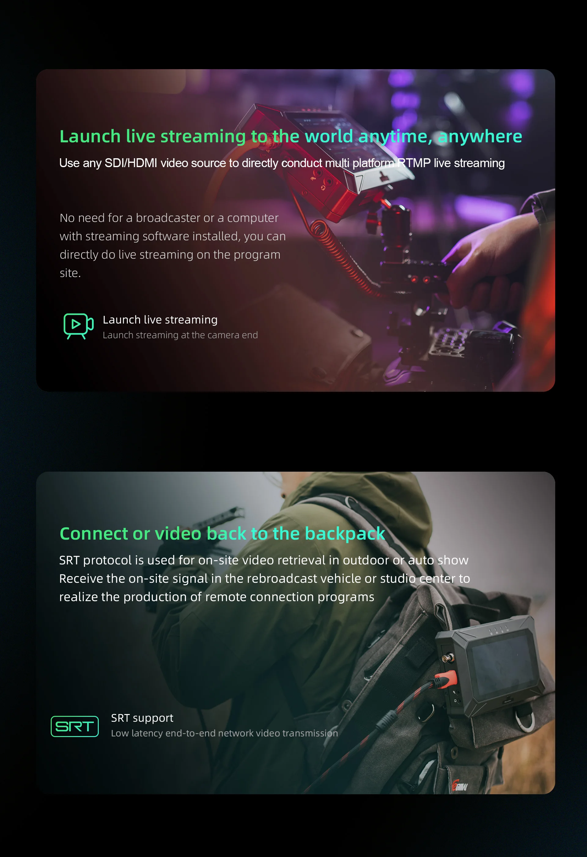 Protocol | SRT, RTMP, RTMPS | ||||||