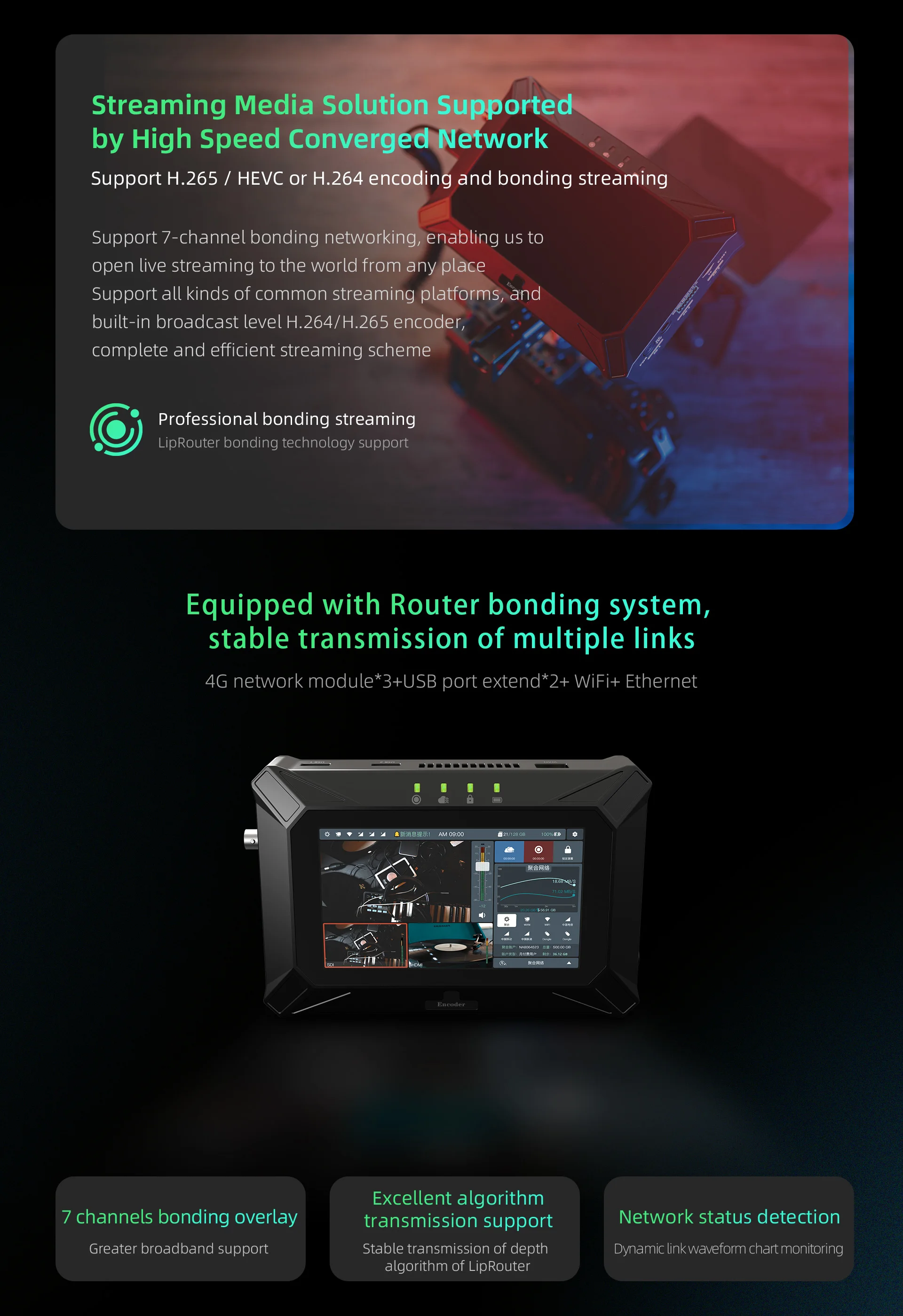 7 links bonding | 3*4G sim+WIFI+WAN+2*USB3.0 External | ||||||