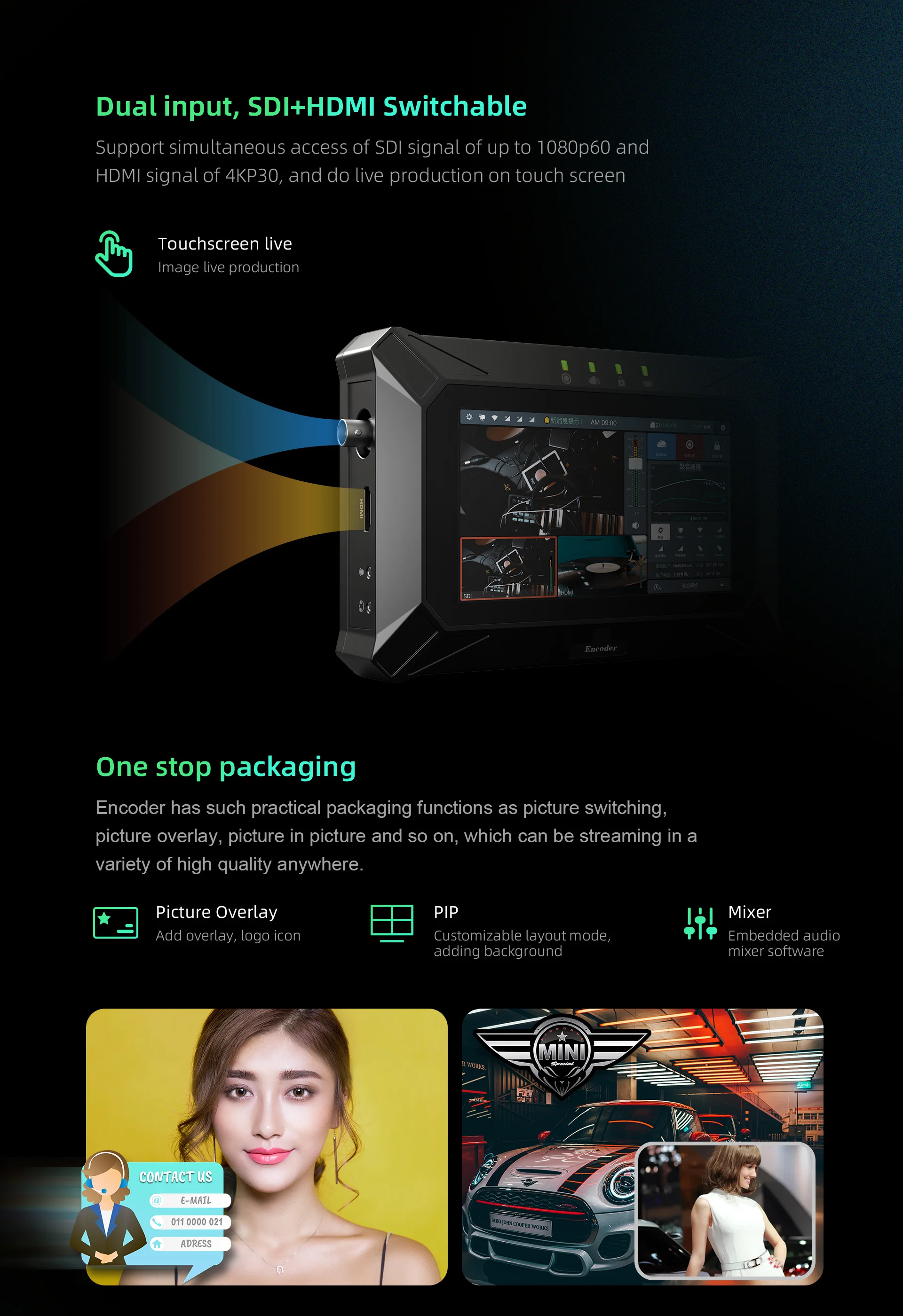 Input | HDMI 4k 30FPS,SDI 1080 60FPS | ||||||