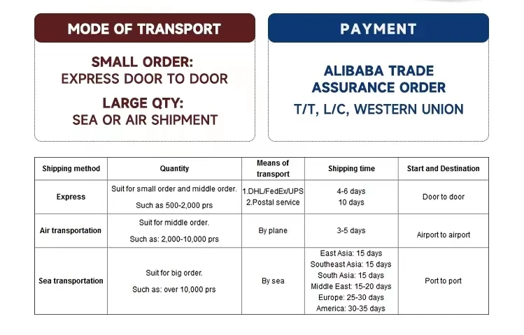 A:MOQ is 1pr. 2. Q:Can I make my logo on it? A:Sure. We can make your Logo on it, the MOQ is 500prs 3. Q:Can l make customized packing? A:Yes,We can make customized packing if your order meet 200prs. 4.Q:What Shipping way to send goods and how long I can take a sample?