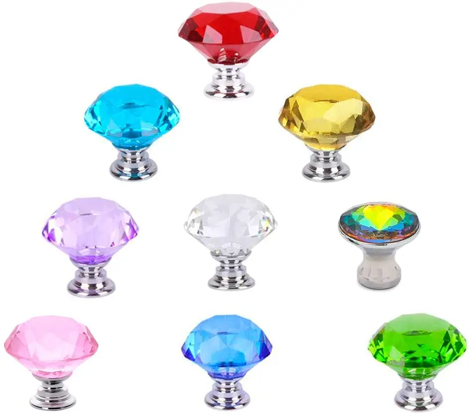 Bulk wholesale stocked transparent colorful crystal big diamond 30mm single hole knob handle Modern European style door handle Size :30*30,26g Packing:1pc/oppbag, 50pcs/box, 500pcs/carton,30*20*20cm, 11kg/ctns Color: Many big diamond topper optional |